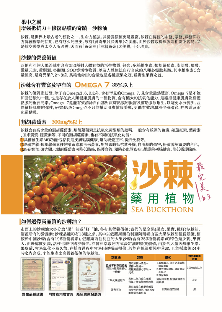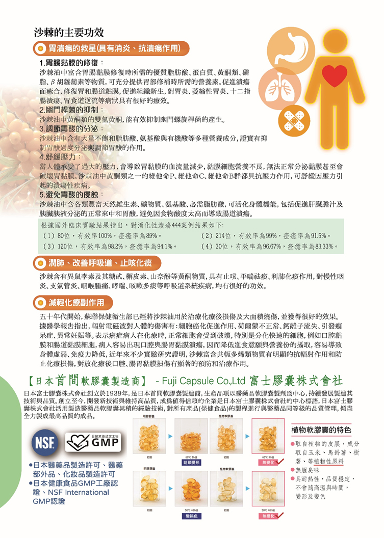 • 內容成分:沙棘油(Caratinoids 300mg%以上)500mg